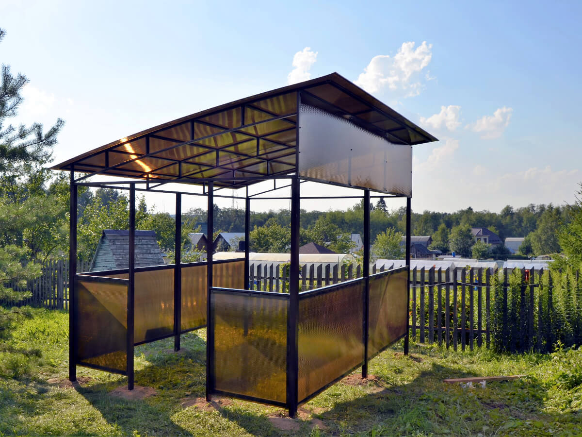 Поэтому компания "НавесСтрой" настоятельно рекомендует не экономить, а усилить каркас навеса для дачи более жёсткими профилями с увеличенной толщиной металла и количеством несущих ферм.