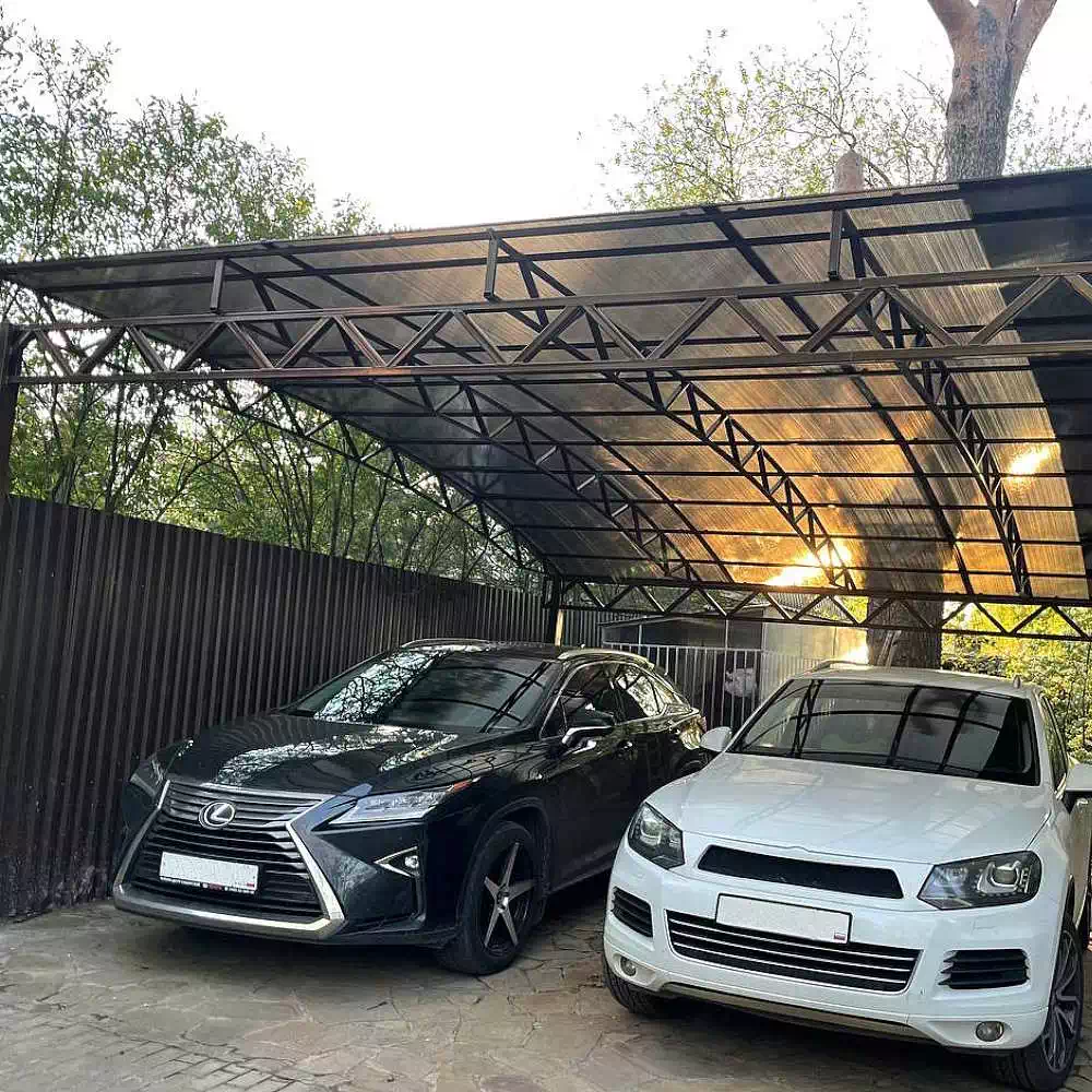 Поэтому компания "НавесСтрой" настоятельно рекомендует не экономить, а усилить каркас навеса из металлочерепицы более жёсткими профилями с увеличенной толщиной металла и количеством несущих ферм.